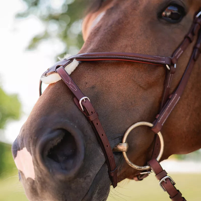 Anatomically cut crowns and soft padding are designed to reduce pressure around the poll and base of the ears. Balanced cheekpiece angles and tidy keepers help the bit sit quietly for clearer, more dependable communication.