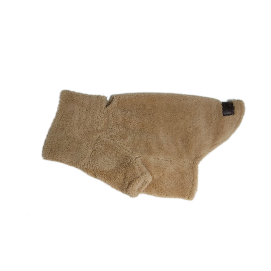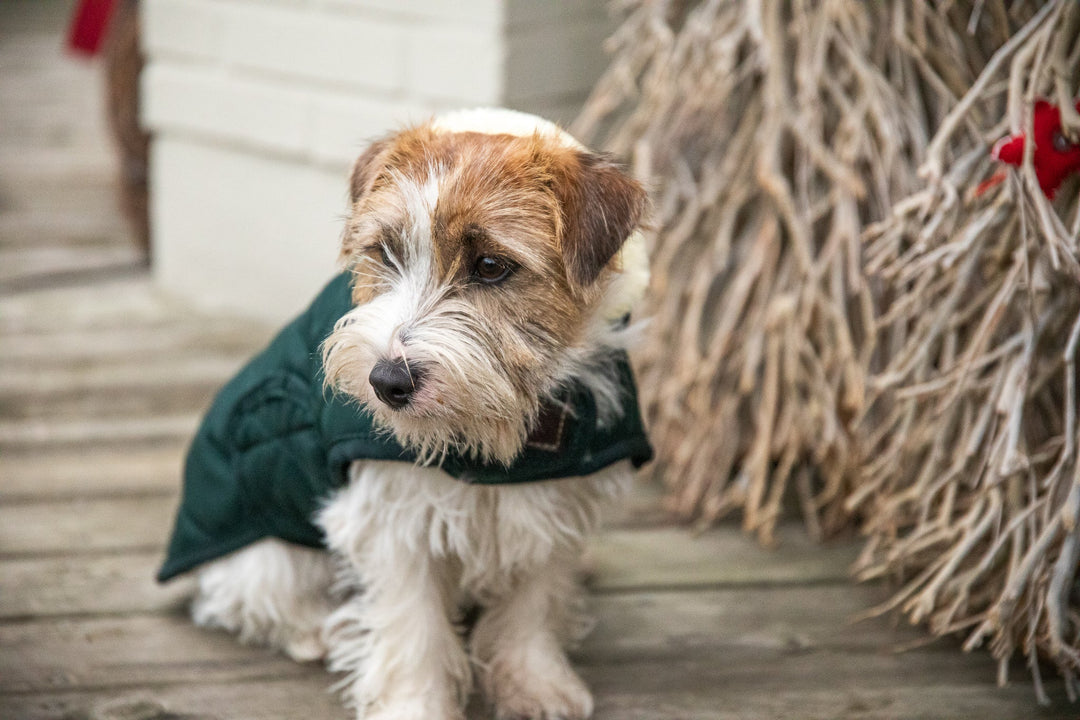 It should cover the back without blocking the tail or front leg movement. A tidy fit keeps warmth in; leave room if you plan to layer a jumper underneath.