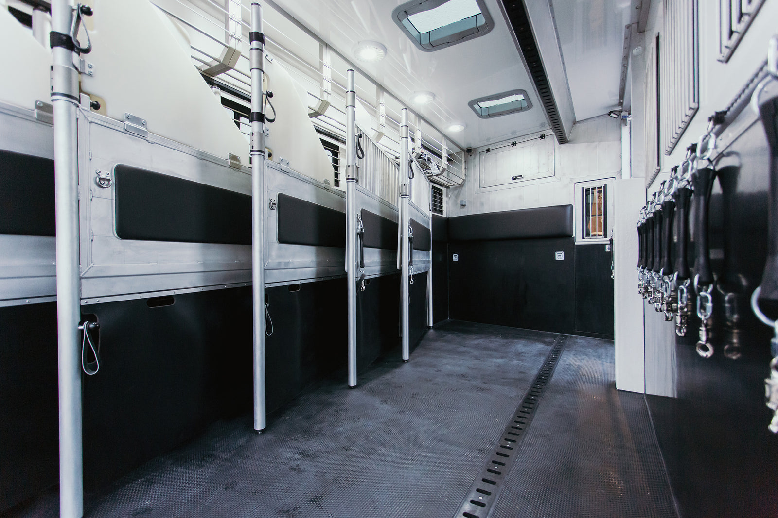 We love the stallion stalls, as they give horses that extra bit of space and prevent them from feeling claustrophobic. Mares and foals have two large double stalls, providing plenty of room for the foal to lie down comfortably on a long journey.